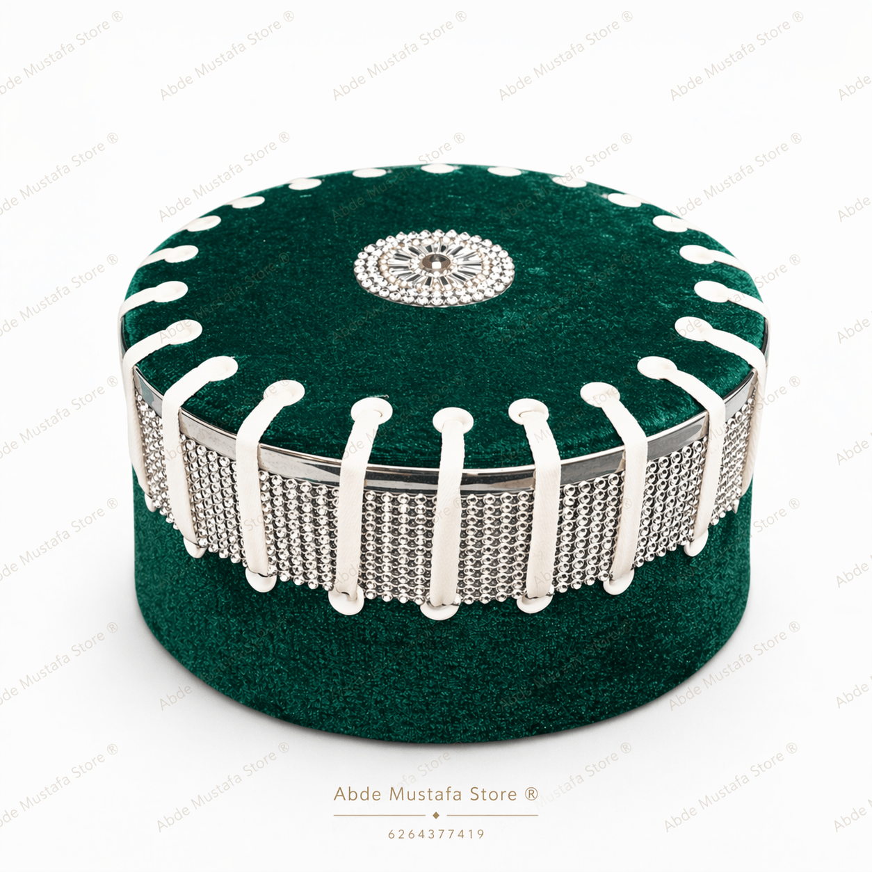 Featuring a rich green velvet base with detailed silver stone work, this cap delivers a unique and eye-catching look. The intricate handcrafted design and fine finishing add a sophisticated touch, making it an ideal choice for those who prefer a stylish and premium appearance.