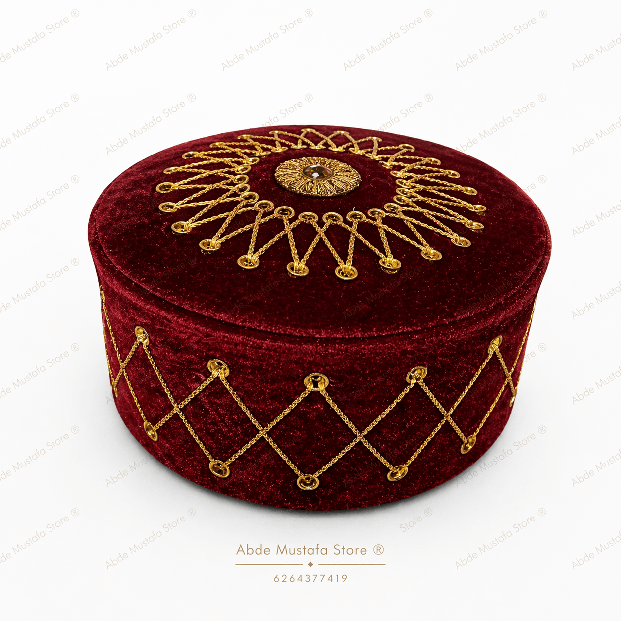 Premium Islamic Cap for Men Maroon Velvet Kufi Cap